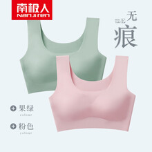 南极人旗舰内衣女薄款夏季内衣女士无钢圈小胸聚拢文胸夏季薄款无痕美背心式运动大码抹胸罩 【背心款】粉色+果绿 S(适穿100斤以下 70ABCD&75AB)