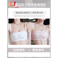 法国KJ 内衣女小胸聚拢无钢圈防走光抹胸式裹胸无痕性感无肩带文胸罩套装 白色+砖红 32A 70A