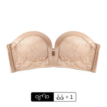 美澌倪 无肩带文胸聚拢防滑内衣女无钢圈调整型隐形美背蕾丝胸罩 肤色 70D