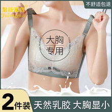 聚拢狐狸【2件装】泰国乳胶无钢圈大码文胸罩薄款大胸显小全罩杯收副乳曼妮白色芬慕色幸福天使胖mm内衣女 松绿+紫兰(2件装) 42B/95B