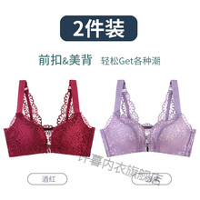 许暮前面带扣子的文胸前扣美背无钢圈薄款性感文胸大码200斤大胸显小女士内衣聚拢胸罩w 酒红+浅紫 75C