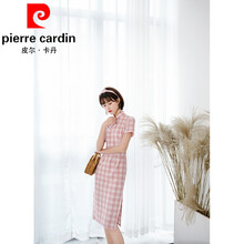 皮尔卡丹旗袍2021年新款格子年轻款少女气质优雅改良连衣裙日常可穿夏针织 2015 L