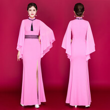 澳曼琳微弹免烫舞台演出高端走秀旗袍中国风红色2021新款优雅长款礼服女 粉色 S