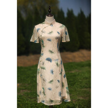 法施希 越南奥黛旗袍裙改良版连衣裙法式蕾丝旗袍复古气质优雅中国风年轻款少女小众夏刺绣 米色 M