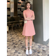 黄色格子旗袍年轻款连衣裙2021年新款少女改良时尚中国风休闲短款 20155粉红 A字 S
