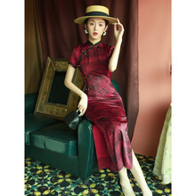 佐罗骑士轻奢品牌高端缎旗袍2021年新款优雅长款女复古中国风酒红色改良连衣裙同款 酒红色 S