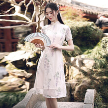 旗袍少女民国风春夏装改良版连衣裙宽松中式复古旗袍刺绣遮肉裙子 紫色蔷薇 S