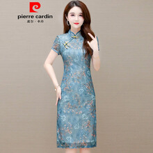 皮尔卡丹品牌女装旗袍改良版连衣裙2021新款女夏天法式复古品牌年轻款高端气质裙子针织 蓝色 M
