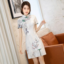 国潮旗袍女夏2021年新款改良版年轻款祺袍复古气质小个子短款 SM-山水画 S