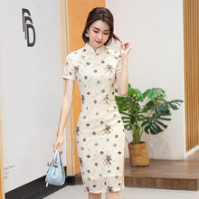 香槟旗袍年轻款2021年新款改良新式素雅复古小个子少女连衣裙夏季 YX8150 香槟色 S