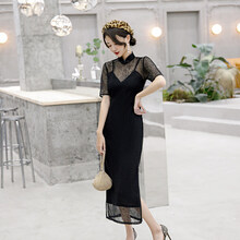 改良旗袍连衣裙夏女2021新品中国风版复古少女年轻款日常可穿年夏长款 黑色 XL