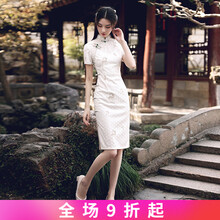 ℠〶ℙℍ【高档品牌】CHNMR改良旗袍女2021年新款少女蕾丝年轻款时尚优雅日常可穿修身复古夏 米色 麋鹿(SJT210404) S