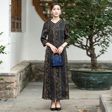 华族经典真丝香云纱改良版旗袍连衣裙夏季高端气质优雅长款七分袖 120衣长-预售30天 S