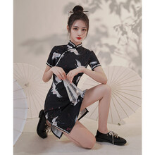 中国风女装改良旗袍2021年夏季新款国潮黑色小个子少女年轻款短款 墨语 S