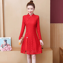 莉荷婷旗袍连衣裙改良复古优雅中国风气质日常中长款婚宴蕾丝敬酒礼服 8192 红色 XL