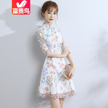 富贵鸟品牌春秋中国风改良版旗袍中长款鱼尾轻少女学生中袖蕾丝连衣裙优雅 改良版矢豆款 S