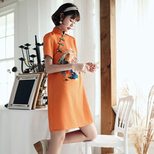 高端品牌女装2021夏季新款改良旗袍红色宽松遮肚年妈妈穿的连衣裙高考考旗开得胜 JFX176 S