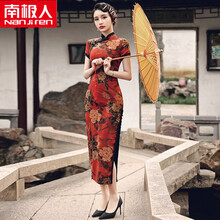 南极人【好质量】时尚女王轻奢老上海旗袍年轻款少女年新款中国风改良版复古中袖连衣裙优雅 TX长款蕾丝边红色凤尾牡丹984 M