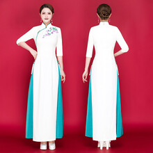 澳曼琳2021年新款高端走秀旗袍长款优雅舞台表演改良版修身显瘦连衣裙女 白色 S