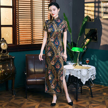 旗袍长款真丝优雅复古桑蚕丝旗袍连衣裙改良老上海旗袍 花色 S