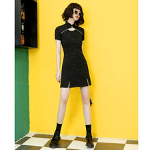 旗袍连衣裙夏天黑色2021年新款夏季年轻款少女改良复古小个子国潮短款 美人如花 S