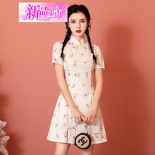 2021夏新款装改良修身显瘦碎花短袖短款复古旗袍裙女士薄款 白色 S