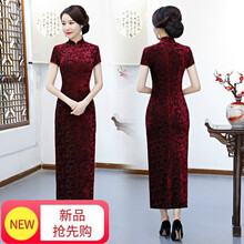 丝绒旗袍CaiwenKelun轻奢品牌中年妈妈金丝绒旗袍长款优雅女弹力修身婚礼大码加肥加大气质丝绒2 2658丝绒红 M
