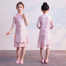 亲子装旗袍2021年新款夏时尚中国风母女裙连衣裙洋气改良版中长款 粉色装 100