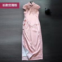 南极人 轻奢高档老上海旗袍2021春季新款刺绣改良连衣裙端庄大气少女时尚性感日常 粉红色2 长款优雅粉 XXL
