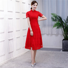 高端品牌女装2021夏季新款红色喜庆高考旗袍旗开得胜开叉中国风大码妈妈穿的中考考服 红色 S