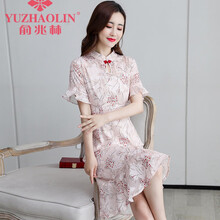 【官方旗舰】俞兆林优雅高端气质2021夏季年轻新款改良版旗袍鱼尾碎花连衣裙子女神范【专柜品质】 粉红色 L