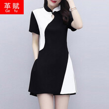 革赋 夏天高贵优雅气质大码女装胖mm中国风旗袍两件套裙子时尚短裤套装 黑色 L建议100-119斤