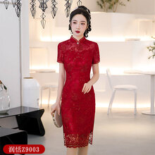 轻奢女装2021年新款高端结婚旗袍夏季蕾丝气质婚宴中年妈妈婚礼喜婆婆优雅 润恬Z9003 M