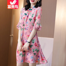 富贵鸟品牌2021新品轻奢旗袍改良版真丝连衣裙中国风复古气质优雅民族风唐扣盘扣碎花裙子巨显瘦气质女装 印花 M