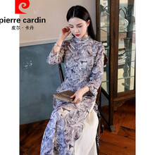 皮尔卡丹轻奢品牌 改良旗袍2021夏季新款年轻复古中国风洋气碎花连衣裙日常生活装针织 木兰 S