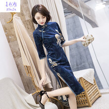 【高考旗开得胜妈妈装旗袍】旗袍年轻款改良版中国风法式复古小个子连衣裙祺袍优雅少女连衣裙 仙鹤蓝(BJS191106) S