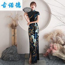 走秀旗袍加长款演出长款年轻款少2020年新中国风改良版复古连衣裙优雅 长款亮片妖姬 S