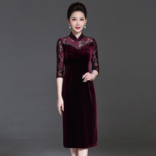 加厚加绒秋冬旗袍修身妈妈装优雅复古大码金丝绒旗袍婚礼婚宴礼服 210# M
