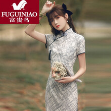 富贵鸟 2021年新式蕾丝旗袍少女年轻款蚀骨气质可爱日常可穿小个子装 文蕾黑 XL