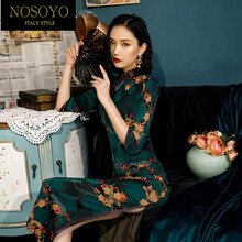 NOSOYO轻奢高端品牌新式改良版旗袍年轻款少女新复古中国风气质长款旗袍式连衣裙 5550绿 S