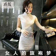 恒潮 旗袍夏季日常可穿年轻少女改良时尚复古蕾丝气质连衣裙短款 白色短款 S