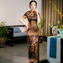 雅鹿复古老上海旗袍夏季2021年新款女夏改良中国风妈妈连衣裙走秀长款 D1086黄 XL