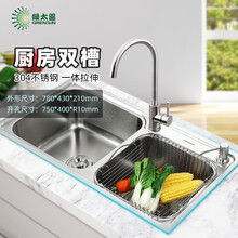 绿太阳304不锈钢水槽厨房菜盆水槽双槽套餐洗菜盆洗碗槽水池85045 85045+A34111
