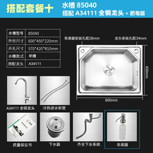 绿太阳卫浴厨房水槽套餐304不锈钢一体水槽洗碗池厨房洗菜盆单槽85040 85040+A34111+85066-1