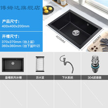 石英石水槽单槽石英石水槽台下盆悍高327石英石水槽大单槽厨房水槽花岗岩洗碗池洗菜盆台下盆套餐 400*400单槽【不配龙头】乌金黑