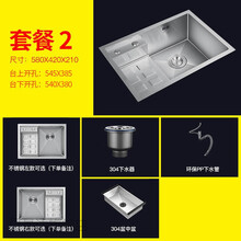 阶梯式水槽台中盆水槽台中盆洗菜盆阶梯水槽厨房阶梯式水槽304不锈钢手工水槽单槽洗菜盆洗碗盆阶梯水槽套 580*420-套餐2-带盆中盆