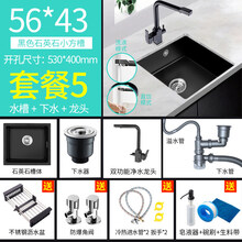 定制厨房黑色石英石水槽大单槽套餐花岗岩洗菜盆嵌入式台下盆洗碗水池 56*43石英石配黑色方体圆管二合一净水龙头