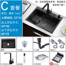 10年质保 九牧王工艺黑色不锈钢纳米水槽手工厨房洗菜盆洗碗池家用304双槽 C套餐 【方形水龙头】 52*43 【纳米】 黑色单槽