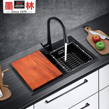 墨林水槽石英石大单槽黑色水盆厨房米白洗菜盆花岗岩水斗家用洗碗槽洗菜池搭配黑色龙头套餐 星光黑750x475mm【含抽拉龙头】