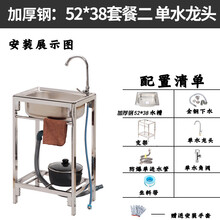厨房不锈钢水槽简易洗菜盆单槽水池水盆家用洗碗池洗手盆带支架子 加厚201钢52*38套餐二单水套餐